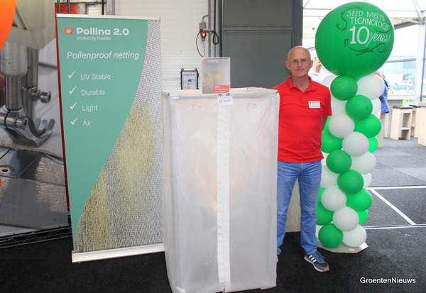 Anton Hulsegge with Pollina 2.0, a mesh solution for wind pollinators