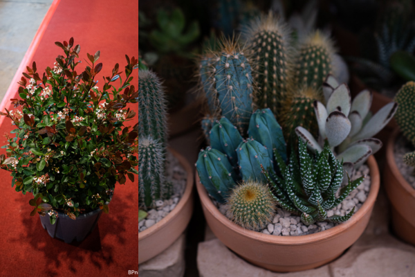 The Rhaphiolepis baby pink and mini cactus mix in pots