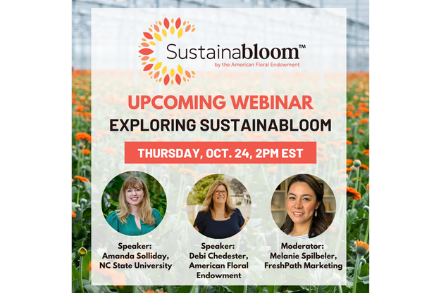 Eager to learn more about Sustainabloom, the American Floral Endowment's program aimed at providing education and resources to support sustainable practices in the floral industry? On Thursday, October 24 at 2 PM EST an webinar will be organized to learn more about the background of Sustainabloom, and see a guided tour of the new website and top resources. There will also be a live Q&A with a member of the Sustainabloom research team.