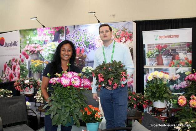 The big greenhouse vegetable projects naturally draw attention at the Canadian Greenhouse Conference, but the (local) ornamental horticulture sector is also present. Cut flower growers are having a tough time, as we heard during the bus tour before the fair. There is more movement in the potted plants domain. Below are four photos of companies present. A full photo report will follow next week.