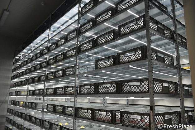 In this application area, the required intensity level expressed in PPFD, i.e. the Photosynthetic photon flux density expressed in µmol m-2 s-1, is relatively low compared to other areas in which we operate. All lighting parameters are regulated by a control panel from which temperature and ventilation can also be set.
