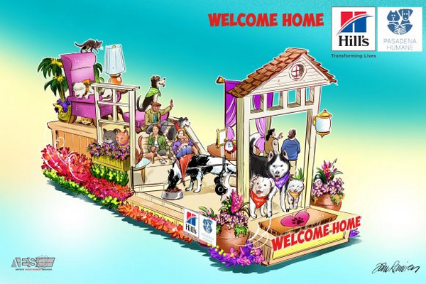 Hill's Pet Nutrition and Pasadena Humane's 2025 Parade float celebrates the heartwarming journey of shelter pets finding their forever homes. The "Welcome Home" float celebrates the joy, companionship and enrichment that pets bring. The float shines a light on the life-saving power of adoption, especially for vulnerable pets like large dogs. Together, we can all create more "Best Days Ever" for the millions of pets waiting for their new homes. The float features vibrant beautifully designed floral depictions of adopted dogs and cats, representing real pets from Pasadena Humane, riding alongside passionate staff and volunteers. Adoptable dogs from the shelter will ride on the float, inviting everyone to open their hearts and homes to pets in need. Since partnering in 2012, Hill's and Pasadena Humane have provided nutritious food and lifesaving care to more than 70,000 animals. This float symbolizes their shared mission to give shelter pets a second chance at life. Hill's Pet Nutrition and Pasadena Humane are on a mission to help every shelter pet find their "Welcome Home" through adoption!
