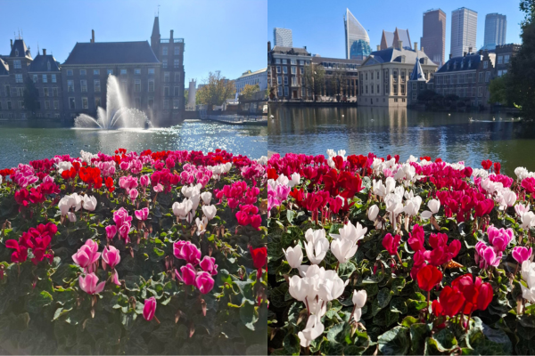 In the center of The Hague (the Netherlands), large planters with colorful Garden Cyclamen have been on display along the Hofvijver since the end of September. This action is part of a promotional campaign by cyclamen growers. The Cyclamen suppliers of Royal FloraHolland have established the promotional initiative PSP ("Product Specific Promotion"). The aim is to draw more attention to the use of cyclamen as an outdoor plant.