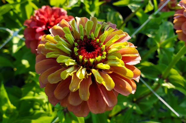 Queen Red Lime is a good option for farmers who want straight, sturdy stems and a medium-sized bloom. And for farmers who want the most stems with smaller blooms, there is Oklahoma Ivory. Farmers who are looking for a unique variety of zinnia and like curved stems might like Zinderella Peach.