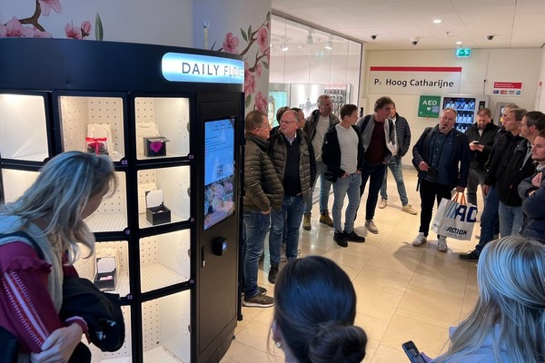 "The tour started with a reception and presentation by Letty Pennings at florist chain Bloem! at Utrecht Centraal," he says. "This is a 'high traffic' retail location where everyone is in a hurry and therefore has little time to find a beautiful bouquet. With an attractively presented collection of bouquets and clear fixed price points, Bloem! makes choosing easy for customers. With a self-scanning checkout or payment via an on-shelf QR code, Bloem! fully meets the need for convenience. Efficiency is certainly one of the ways in which physical shops can distinguish themselves. In Hoog Catharijne, you have a vending machine by Daily Flowers where convenience takes on another whole new meaning. On the other hand, this form of sales still requires attention when it comes to attracting customers."