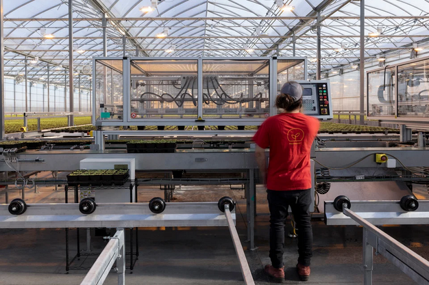 While the seeding stage of the basil plants was already automated, employees were still placing seedlings on a tray and then moving to the different sections of the greenhouses at every subsequent stage. At harvest time, they had to go into the greenhouses to pick the plants, package them one by one, and transport them to a workstation, where other employees would pack them in cases.