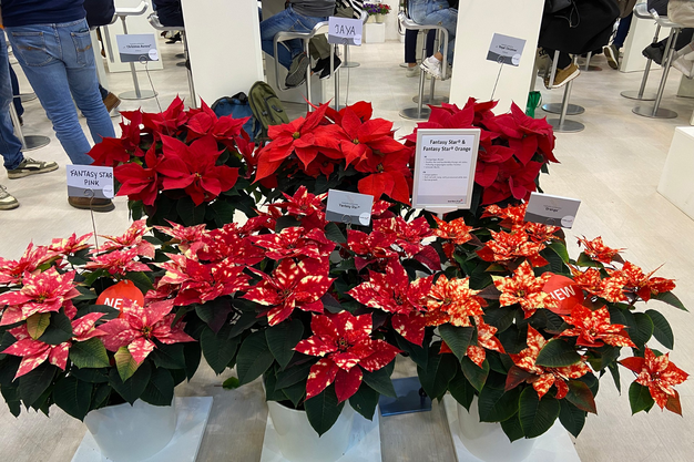 Firstly, the extensive Poinsettia range was a real eye-catcher, from which the Fantasy Star varieties with their white dotted bracts stood out in particular. The Fantasy Star Orange was probably the most photographed item on the stand.