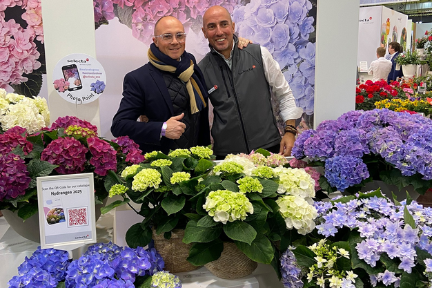 A newly set up 'photo point' offered visitors an attractive opportunity to take photos and at the same time successfully marked the IPM premiere of the colorful hydrangea range. Selecta presented impressive examples from its diverse hydrangea range. Rooted cuttings are delivered to Europe directly from the company's own mother plant location in Kenya.