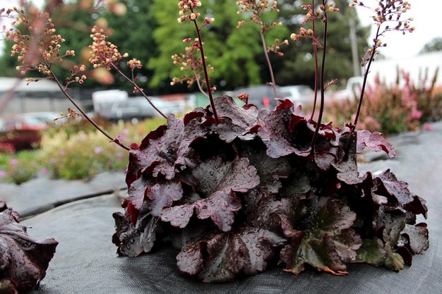 The breeding team at Terra Nova recommends allowing 'Rosewood' to dry moderately between waterings during finishing time in the greenhouse. Finishing growers can expect the finish time from a liner to a 4-inch pot to be 6-8 weeks; finish time from a liner to a 1-gallon pot is 10-12 weeks. 'Rosewood' grows most actively in spring and reaches a height of 8", width of 16" and flower height of 18". USDA Hardiness Zones for the company's new coral bells are 4-9.