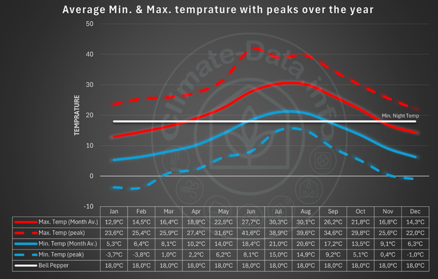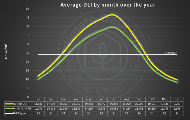 Johan doesn't stop at raw numbers. He developed an extensive database with climate data linked to the ideal growing conditions of 120 common greenhouse crops. For each crop, the database includes optimal day and night temperatures, humidity, light intensity, and CO₂ levels. Think of tomatoes, peppers, lettuce, basil, chrysanthemums, or cannabis—there's a climate profile available for each crop.
