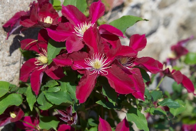 Bred by Raymond Evison, this compact clematis reaches 90–120 cm and is ideal for patios and containers. It boasts vibrant red flowers with yellow anthers, blooming profusely from May to July and again in September. Elpis thrives in full sun and well-drained soil, responding well to simple pruning.