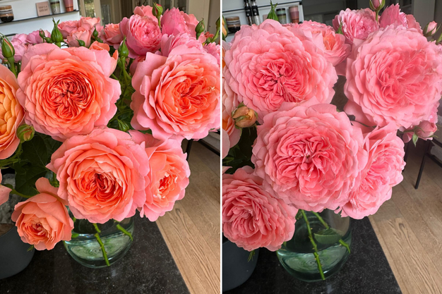 The Voorn Seasons greenhouse is currently in full bloom, prompting Jozina and Lisa to visit customers more frequently during this period. They also plan to extend their visits to international customers. Voorn Spray Roses continually expands its range with new varieties, and soon, Happy Wedding and Wild Miracle will be available. The Wild Miracle is particularly notable; it resembles a wild rose with an orange center that fades into pink, eventually turning fully pink after some time in a vase.