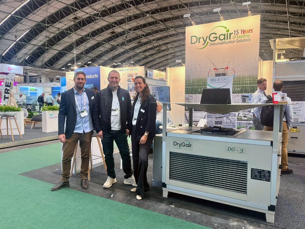 © Arlette Sijmonsma | FloralDaily.com DryGair launched the DG-3 at the event, a smaller dehumidifcation device. In the photo Amir Kandlik and Hadar Fuchs, and in the middle Simon Hansen with Miljogartneriet, one of the first growers to see the application in tomato cultivation