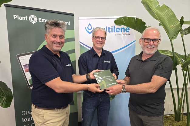 © Thijmen Tiersma | FloralDaily.com"The Influence of Coating on Irrigation," created by Plant Empowerment in collaboration with partners Lumiforte and Cultilene. "Light and irrigation are essential for plant growth, as they drive photosynthesis and mineral uptake. While light steers development, water supports cooling, nutrient transport, and energy production", the authors, Paul van Gils (Lumiforte) and Remy Maat (Saint-Gobain Cultilene), explain. They handed it over to Hans van Gellecum from Canada.