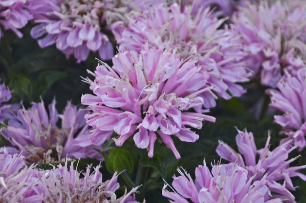 Monarda didyma Sugar Buzz Pink Frosting, which joins the two existing Sugar Buzz varieties Cherry Pops and Grape Gumball. This pollinator-friendly plant features frosted white tips on intense medium pink flowers. It's mildew resistant, grows to a mature height of 16", and is hardy in USDA Zones 4-9.