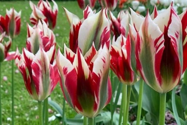 If classic shapes in new colours catch your eye, turn to the likes of new 'Flaming Spring Green' with its fresh, two-tone, pointed petals, 'Dafeng' for its traditional cup shape in fiery shades, or 'Sinfonie' for its tall sturdy stems and soft, romantic, white-pink blooms.