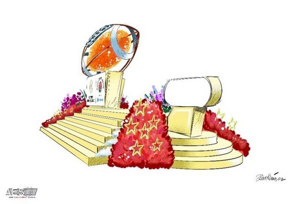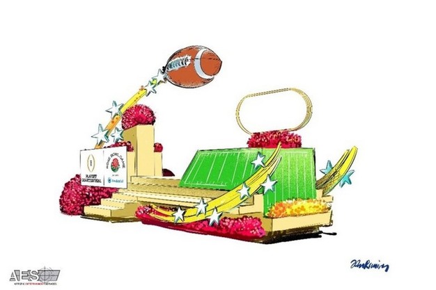 The team float will jump-start the excitement and support among football fans for The Granddaddy of Them All. The float features a giant football surrounded by stunning flowers to help rally the fans of the Rose Bowl Game presented by Prudential and the Rose Parade presented by Honda.