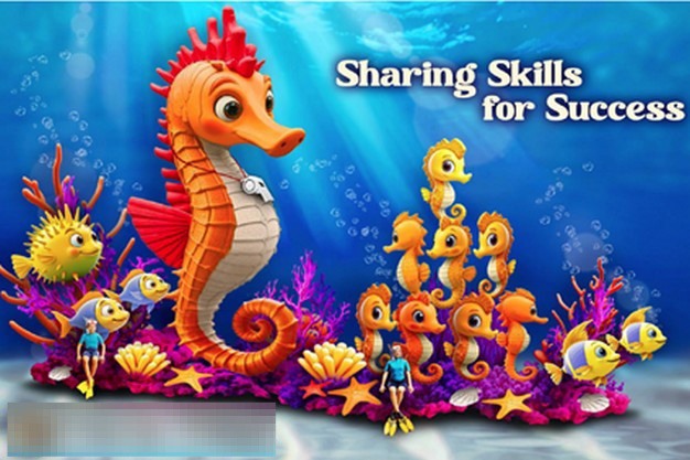 Prepare to dive into an ocean of wonder as The UPS Store reveals its under-the-sea themed float, "Sharing Skills for Success." This float entry brings to life the theme of the 2026 Parade, "The Magic in Teamwork," by portraying a vibrant underwater world that inspires viewers to discover the extraordinary power of collaboration. At the heart of this aquatic design stands a majestic 32-foot-tall seahorse, expertly coaching his babies (or 'frys') through a synchronized swimming routine. This underwater paradise float bursts with a kaleidoscope of color thanks to the coral reef setting, teeming with shimmering fish, radial starfish and shiny seashells.