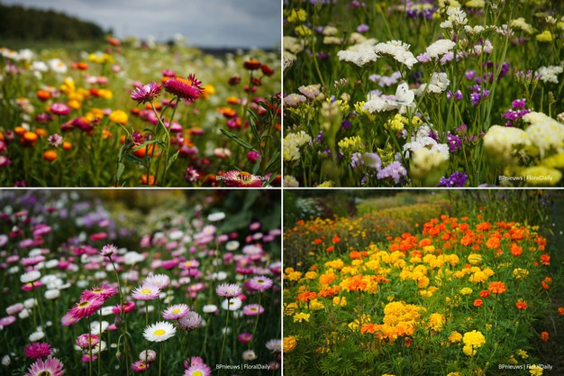 © Mirthe Walpot | FloralDaily.com Godetia, Helianthus Sungold (Teddy Bear), Helichrysum, Cosmea Double Click