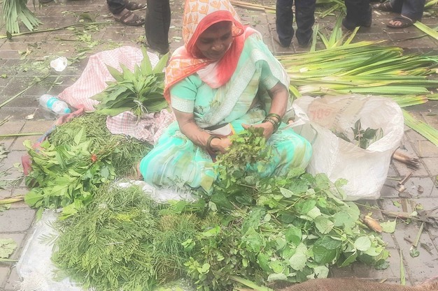 The market was buzzing with excitement as retail customers and bulk buyers, retail florists, flower decorators, event people alike flocked to purchase flowers and leaves for worship and decoration. Despite the availability of plastic flowers in city's local market, customers showed a preference for fresh flowers to welcome their beloved Lord Ganesha.