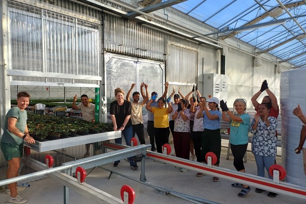 On August 26, 2025, the new greenhouse was officially put into operation. Lisanne Koppe and team leader Sandra Kus brought in the first bench of mother plants, marking the official opening, which was celebrated together with all employees.