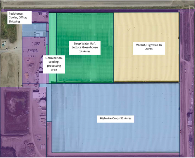 · 32 acres of semi-closed high-wire greenhouses designed for tomatoes, peppers, and other vine crops