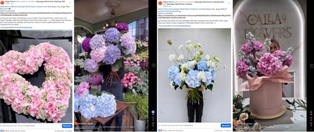 The Iconic Hydrangea Challenge made a notable impact, reaching wide audiences in the millions through Master Florist's social media and active community channels. More than 100 entries were received, reflecting a strong wave of creativity and a strong interest in working with hydrangeas. For the first time, video submissions were part of the challenge, enriching the variety of designs and adding a dynamic, visual dimension. Together, these elements turned the challenge into a showcase of artistry, interaction, and meaningful engagement across the floral design community.