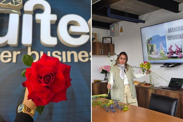 The day began with networking and food, followed by welcoming words from Agrivaldani CEO Valeria Lobato, Elizabeth Muñoz, Sales Manager at De Ruiter, and Shallima Turizo, CEO of Lottas Floral Studio. Shallima then gave a presentation on nontraditional color combinations and floral design basics to inspire participants for the main activity.