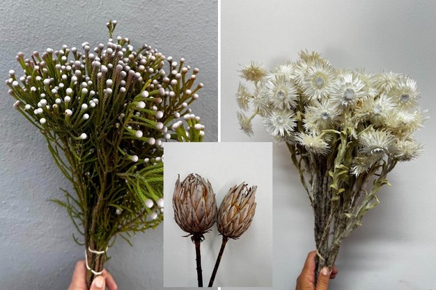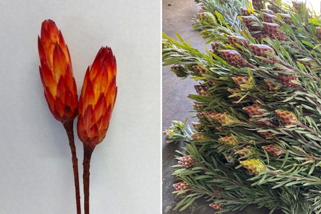 Afriflora CC's operations are divided between dried and fresh product lines. On the dried side, the company focuses on a wide range of species, including Protea, Leucadendron, and Brunia, which are harvested and exported primarily to Germany. There, they are used in the production of Grabgestecke (grave wreaths), especially for All Saints' Day on November 1st. Waldo states that more than half of Afriflora's revenue is still derived from this segment, with Germany remaining the dominant market.
