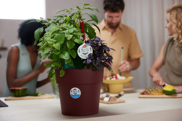 Several companies are featured for their product innovations, including Beekenkamp, Benary, Dümmen Orange, Florensis, Floritec, PanAmerican Seed, Selecta One, and Suntory Flowers. The magazine also highlights the Grow&Go system, an integrated concept with a water buffer that adds value through branding and ease of use. Another feature is D-Tect®Plus, a fully recyclable product line made from post-consumer and post-industrial plastic waste streams.
