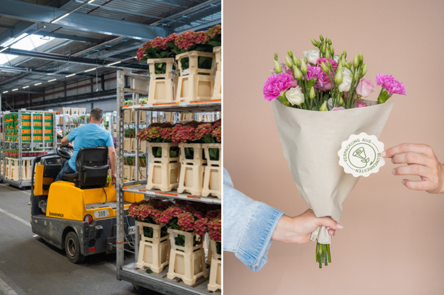 In France, where the group supplies cash-and-carry outlets, florists can return their packaging waste. While this system is still small-scale, Van der Plas Group already sees more German customers sending back their used packaging. The waste is then processed in the Netherlands, creating a recycling loop. Whenever possible, the company has also switched from cardboard boxes to reusable crates that can be used hundreds of times. "This way, we can influence the market ourselves and move toward our goal of using only recycled packaging materials by 2030."