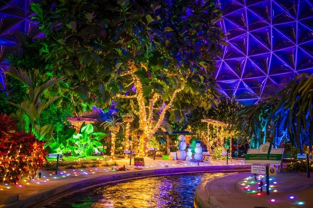 The special after-dark version of the Behind the Seeds tour offers a one-hour walking journey through the Land Pavilion's greenhouses. Guests will learn about the plants that bring flavors and fragrance to holiday traditions, while strolling among hydroponic gardens bathed in soft, colorful light. Decorative touches and carefully placed displays accent the crops, giving the impression of a nighttime garden brought to life for the season.