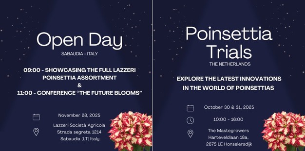 As the poinsettia season approaches, Lazzeri Società Agricola is pleased to invite you to two events — one in Italy and one in the Netherlands — where professionals, growers, and industry experts will come together to explore the future of poinsettias.