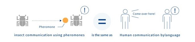 Pheromones are natural scent compounds that allow animals, including insects, to communicate with others of the same species. "These scent signals are invisible and move through the air," Thomas explains. "Insects release and detect pheromones to send messages. For example, they may use a sex pheromone to find a mate, or an alarm pheromone to warn others of danger. You can think of pheromones as a kind of 'scent language' insects use to talk to each other."