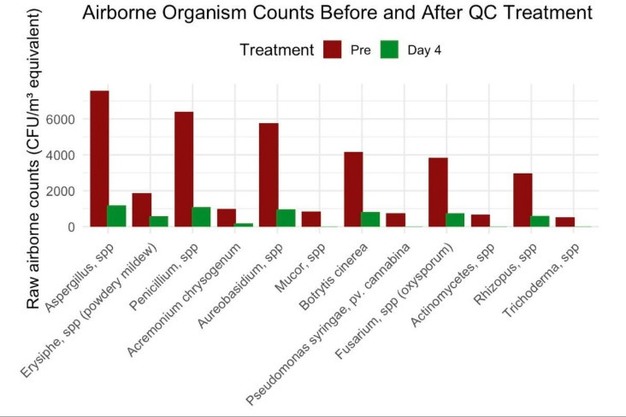 Across the various studies, the company reports an average airborne pathogen reduction of 87.2% within under a week of use and higher reduction of 95%+ when units run continuously for up to a month."It is a practical tool for growers who want to not only control air quality but who also want to understand management of air quality better." he says. "The focus is getting the technology in growers hands through our trial program and building confidence that QC is the solution they have been waiting for."