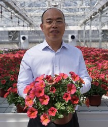 © Shanghai Hong Yuan Flowers operational, with another 200 mu currently under planning and construction," said Zhu Zhonglin (pictured right), the company's owner. The operation comprises four bases in Shanghai and the surrounding areas, utilizing a mix of glass greenhouses, film greenhouses, and open-field cultivation. Current annual production reaches approximately 20 million pots. Our new flower base in Songjiang, Shanghai, is scheduled to undergo final inspection by the end of this month and will become operational next month.