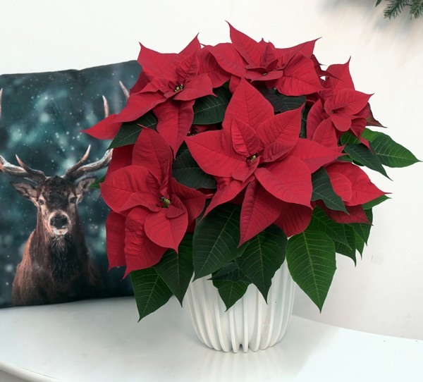 'Star of the Year' – the annual award for a special poinsettia in the Selecta range that has outstanding product characteristics, an unusual appearance or is a big sales success – goes to Royal Christmas. The variety has a bright red colour and rounded, medium-sized bracts. Further advantages are its very good and regular branching, medium to high vigour and normal V-shape with strong stems. Royal Christmas is suitable for medium to large pots and various climate zones with a reaction time of 7.5–8 weeks.