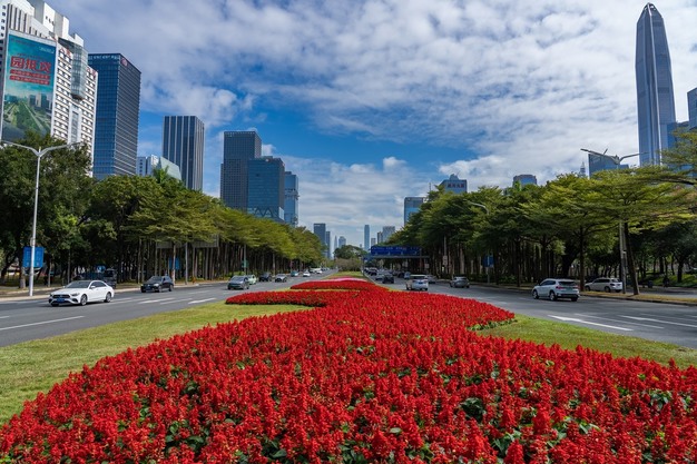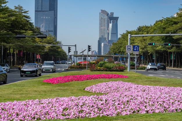 The plants also hold up well in Shenzhen's fall and winter weather. Warm days, cooler nights, and sudden rain are common, and these flowers were chosen because they stay intact through heat and recover quickly after rain.