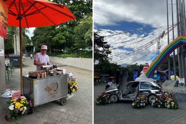 For the concert in Medellín on November 29, Deliflor and J Balvin's team set out to create a large-scale floral transformation. Starting a week before the show, the entire entrance to the stadium and the surrounding Parque de Banderas were gradually dressed in blooms. Fans arriving at the venue passed beneath towering floral arches, encountered three-dimensional versions of J Balvin's symbols—such as his smiley-face logo—covered entirely in flowers, and saw the artist's "Carro Rayo" decorated and surrounded with blooms. A Deliflor experiential booth, fully draped in flowers and co-branded with J Balvin, Vibra en Alta (his foundation), and Flores El Capiro, welcomed visitors and created an additional point of interaction.