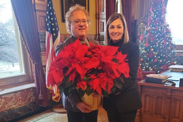 Plantpeddler observed National Poinsettia Day on December 12th by presenting Poinsettias to notable figures in Iowa. The recipients included Iowa Governor Kim Reynolds, Iowa Secretary of Agriculture Mike Naig, Iowa Senate Majority Leader Mike Klimesh, Iowa State University's President Dr. Wendy Wintersteen, Dean of the College of Agriculture Dr. Daniel Robison, and other Iowa dignitaries and influencers.