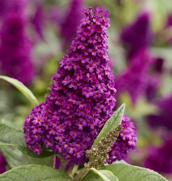Li'l Magenta produces magenta flower spikes from late spring through frost and attracts pollinators throughout the season. Plants maintain a compact 2–3 foot habit and are suitable for containers, borders, and small landscapes. The variety is hardy to Zone 5 and will be available through the Butterfly Candy Buddleia collection.