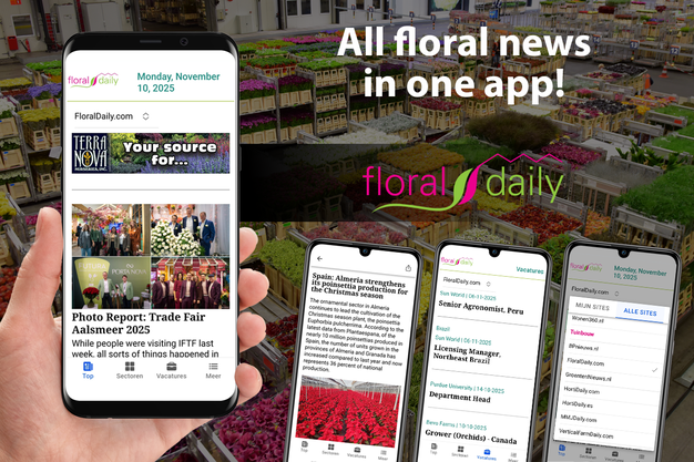 FloralDaily is the largest online news platform for the international floriculture industry. With more than 32.000 email newsletter subscribers, it plays a central role in the sector's news landscape. Thanks to a globally active and present editorial team and strong links with international sister publications, the news service offers a global scope on market developments.