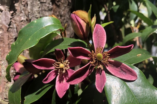 A selection of compact trees and large shrubs adds character and presence. Cercis griffithii Blue Lagoon ('RAFMAR 1'PBR) draws attention with its distinctive foliage colour and elegant branches. Ficus carica Fignomenal ('PT-DF-14'PBR) is an outstanding heavy-fruiting dwarf-fig, suitable for gardens and containers. Magnolia 'Stellar Ruby' PBR completes the group with a strong floral display and a clearly defined growth habit.