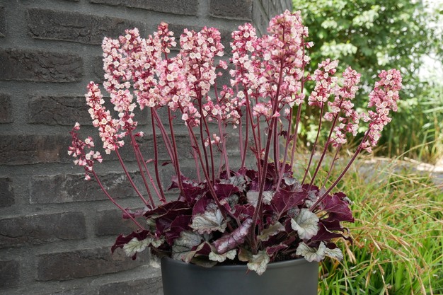'Heucherette Pink' sets a new benchmark for seed-propagated Heuchera. This Heuchera sanguinea is the first from seed to offer exceptionally strong flowering. Large pink flowers develop into rich shades of pink and are carried on sturdy yet compact flower stems. Combined with its distinctive foliage pattern, the plant offers dual ornamental value.
