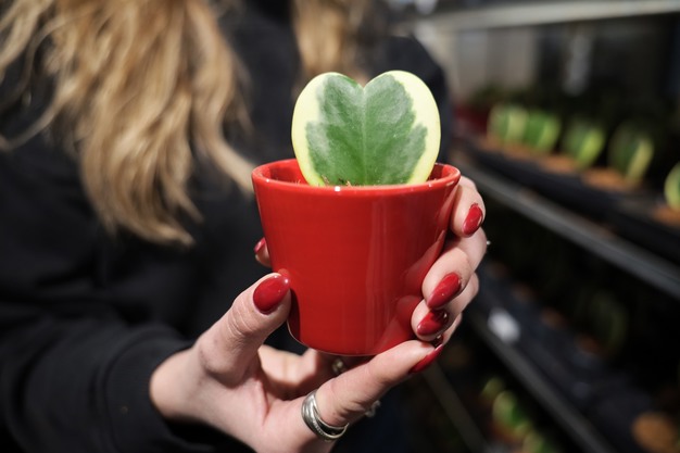 Red, pink and purple heart-shaped pots. Plant tags featuring the word 'love'. A heart-shaped Hoya. A Sansevieria with pink velvet tips. Even a bouquet of wooden flowers designed to last indefinitely. Valentine's Day has become increasingly visible in the product range at Plant World in recent years.