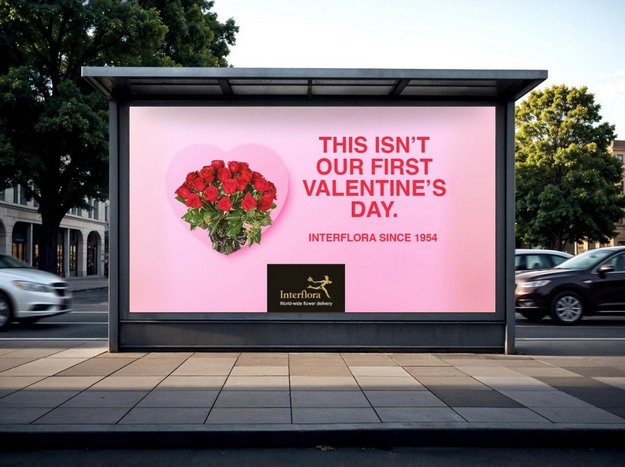 Interflora Australia has launched a wide-reaching Valentine's Day campaign built around bold, modern, headline-led creative designed to resonate with today's flower-buying audience. The refreshed work brings together the gold logo, the classic red rose, and a clean, contemporary visual identity that speaks directly to consumers. The out-of-home creative appears across high-impact metropolitan environments, featuring a heart backdrop framing a premium bouquet of red roses and paired with confident, culturally aware headlines that say it how it is while still feeling timeless.