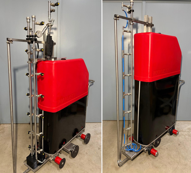 The third machine is the AIR MIX robot, designed for optimal spray results. "This spraying robot uses not only the force of a high-pressure spray pump, but also the power of an air compressor. This technique drives the liquid deeper into the crop. More energy delivers a better spray result."