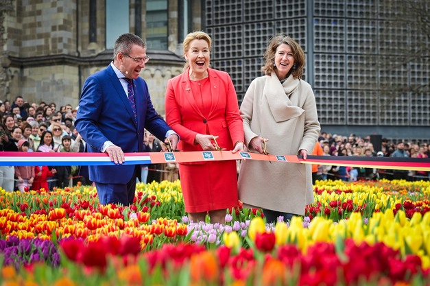 The event, held under the theme "United in Bloom", was officially opened around midday by Franziska Giffey, Berlin's Senator for Economic Affairs, Energy and Public Enterprises, together with Hester Somsen, the Dutch Ambassador to Germany. After the opening, visitors were invited to enter the garden and pick their own tulips.