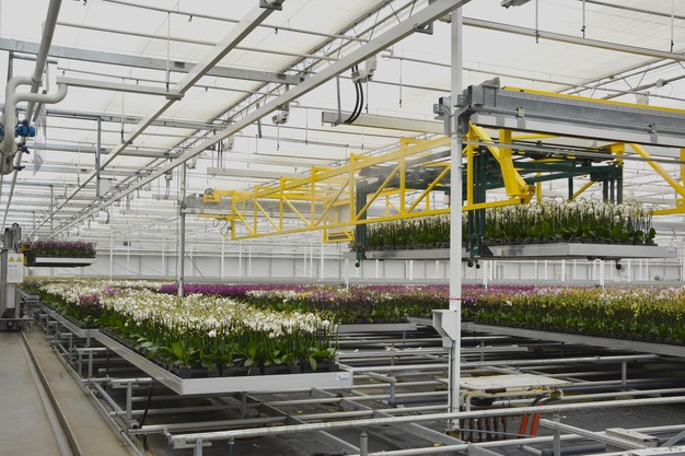 In 2009, propagation company LKP Plants requested a logistics system capable of moving individual rolling containers. At the time, only groups of tables could be moved, which created microclimatic problems in cultivation. A brainstorming session led to the concept of the 1D shuttle, a system that could automatically move tables within the row where they were needed.