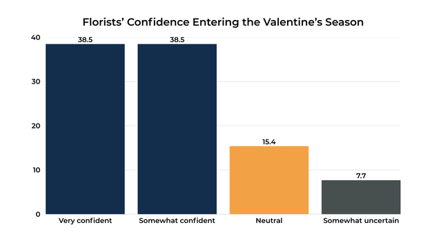 Florists entered the Valentine's season with a generally positive level of confidence regarding product availability and supplier coordination. Many retailers indicated that communication with suppliers and early planning helped them feel prepared for one of the year's busiest floral moments.